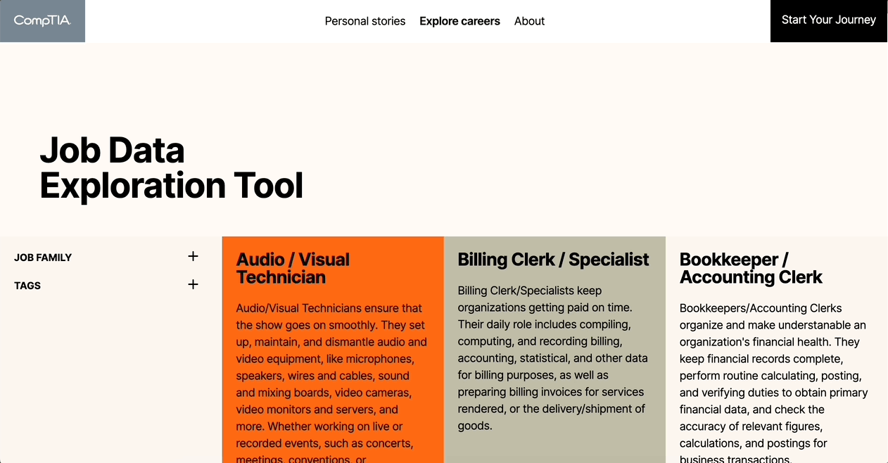 CompTIA aimed to simplify the exploration of tech careers, offering a straightforward alternative to traditional career sites.